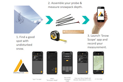 如今,只要您看到积雪,就可以参与。您需要未受干扰的积雪,这意味着没有野生动物的足迹、人的脚印、狗的脚印,也没有被扫雪车或铲雪干扰过的积雪。准备好测量工具:野外爱好者可能已经有了雪探杆(snow probe),这是标准雪崩安全装备包中的一部分,但任何尺子、米尺、卷尺或甚至卷尺都可以,只要它足够长,可以测量积雪的全部深度。