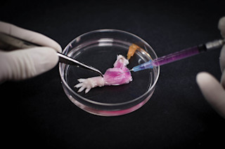 弗兰肯斯坦博士真希望自己也能做到:今年六月,麻省总医院的研究人员宣布他们制造出第一个功能性实验室培养肢体。研究团队截肢了一只死鼠的前臂,并用化学方法剥离了活细胞,留下所谓的细胞外基质,这是一种为血管网络到神经网络等一切提供支架的结构。然后,该肢体在定制的生物反应器中生长了两个星期,培养了肌肉和血管细胞。电刺激显示,由此产生的肢体具有相当于新生鼠 80% 的握力。移植到活鼠身上后,肢体通过新的血管循环血液。