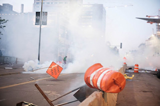 在乔治·弗洛伊德(George Floyd)在警方拘留期间死亡事件发生后的第三天,催泪瓦斯弥漫在明尼阿波利斯(Minneapolis)的街道上。(Dan Aasland/Flickr)