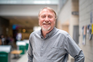 博士后研究员Mike Wiser与伦斯基讨论AVIDA计算进化程序。(图片来源:Charlotte Bodak)
