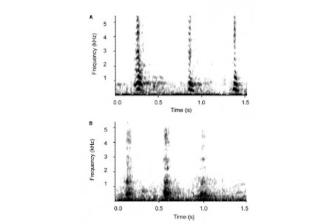 面包(上)和苹果(下)粗犷咕噜声的声学频率图(图片来源:Slocombe 和 Zuberbuhler;Current Biology 2005,第15卷)