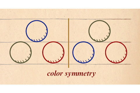 十多年后,物理学家们为强核力(将原子核中的质子和中子结合在一起)构建了一个理论。这种力的核心是所谓的色对称性。(颜色是构成质子和中子的夸克的性质,物理学家将其视为另一种电荷。)
