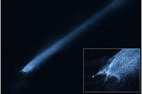 上周,林肯近地小行星研究(LINEAR)天空巡天项目,旨在扫描天空寻找近地小行星,发现了一些非常奇怪的东西;一条拉长的条纹,看起来就像两颗小行星发生了碰撞。仅仅几天后,哈勃望远镜对准了该天体,它看到的东西非常、非常奇怪: