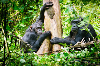 费奥娜从树枝上摘下一片叶子,放到嘴边。但她改变了主意,然后把叶子展示给她的母亲看,母亲短暂地看了看,然后转过头去。这对普通的自然爱好者来说没什么特别的——除了费奥娜和她的母亲萨瑟兰是住在乌干达基巴莱森林的两只成年黑猩猩。
