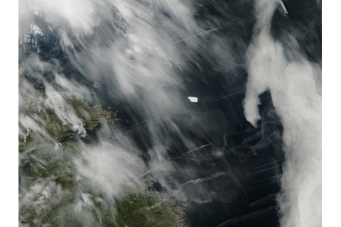 这真是太惊人了:你可能还记得去年八月,一块长达 25 公里的巨大冰山从佩特曼冰川崩裂。这块冰块已经脱离拉布拉多海岸,正向北 Atlantic 海域移动。NASA 的 Aqua 卫星在开阔水域捕捉到了它:
