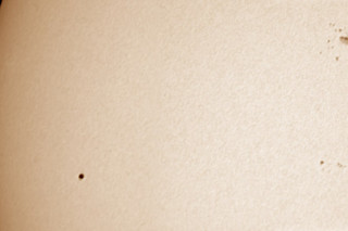 一张拍摄于当地时间上午 8:15 的照片拼接图显示了水星、太阳的边缘以及太阳黑子 AR2542(顶部)和 AR2543。(鸣谢:Ernie Mastroianni) 就天文事件而言,水星凌日不如日食那样壮观,但在这个阳光明媚的波士顿日子里,许多观察者欣赏到了这一相对罕见的事件,上次出现是在近 10 年前。有些人是第一次看到这颗最靠近太阳的行星。通过我的带有太阳安全滤镜的望远镜看,当水星漂移穿过太阳表面时,它看起来只是一个微小的点,而太阳的表观直径是它的近 160 倍。这颗最靠近太阳的行星直径仅为 3,002 英里,而太阳的直径接近 865,000 英里。这个数学计算不成立,因为水星离地球比离太阳更近。凌日现象在世界上大多数地方都可以看到,于美国东部时间早上 7:12 在太阳盘面的左边缘开始出现一个小凹痕。几分钟后,整个圆盘都可以在太阳表面上看到。在接下来的几个小时里,这颗行星稳步穿过太阳的下三分之一部分,然后到下午 2:42 完全从右边缘消失。由于望远镜的太阳滤镜阻挡了除万分之一的光线,水星在出现在太阳表面之前和之后是不可见的。