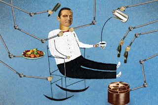 根据专家的说法,有用的家用机器人总是要等 20 年才能出现——这是一个令人沮丧的估计,因为同样的专家向我保证,其他所有令人兴奋的正在开发中的技术只需要 5 年。是的,我知道,你可以开车去沃尔玛买一个“扫地机器人”来陪伴你的“割草机器人”。顺便说一句,你为什么不也在露营用品部买一个“房子”呢?我丝毫没有兴趣与成百上千个愚蠢的、嗡嗡作响的小东西为伴。那些忙碌的清洁器和搅拌锅太小太笨了,我没留意的时候它们可推不了我下楼。