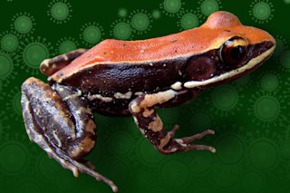 南印度青蛙(Hydrophylax bahuvistara)。它皮肤分泌的一种多肽能对抗流感病毒。 (图片来源:Sanil George 和 Jessica Shartouny)一种印度青蛙分泌的多肽可以破坏流感病毒的变种。青蛙没有多少防御武器可以依靠,它们通过皮肤渗出的化学武器库来武装自己。对于一些青蛙来说,这采取了致命毒药的形式;对于另一些青蛙来说,这些化学物质被认为具有精神活性特性。Hydrophylax bahuvistara 是一种在印度发现的真菌蛙,它分泌一种能抵抗病毒的物质。研究人员对这些青蛙进行研究,将它们通过温和电击获得的粘液分泌物引入 H1 流感病毒变种的菌落中。这种化合物阻止了流感的传播,这是一种由 H. bahuvistara 产生的特殊多肽的作用,它能够破坏病毒。研究人员将这种化合物命名为 urumin,以该地区发现的一种邪恶鞭剑命名,并于周二在《免疫学》(Immunity)杂志上发表了他们的发现。他们还给小鼠注射了高浓度的这种多肽,然后用致命剂量的流感感染它们。大约 70% 的小鼠存活下来,这表明 urumin 可能对人类也有效。在实验室中对人体血细胞进行的测试也表明,在功能剂量下,它似乎对我们没有毒性。对于寻求替代方法来对抗病毒的医生和研究人员来说,urumin 是一个好消息。疫苗可能有效,但在大流行的情况下,供应可能不足,而且科学家并不总是能将他们每年更新的流感疫苗与最流行的毒株匹配起来。寻找自然界中已经部署的机制提供了一种经过检验的对抗疾病的方法。大规模生产这种多肽存在一些困难,因为我们体内的酶通常会分解它们。研究人员希望进行进一步研究,试图创造出一种能够抵抗我们身体防御的 urumin 版本,此外还将扩大搜索范围,包括可能对不同疾病有效的其他物种和其他多肽。