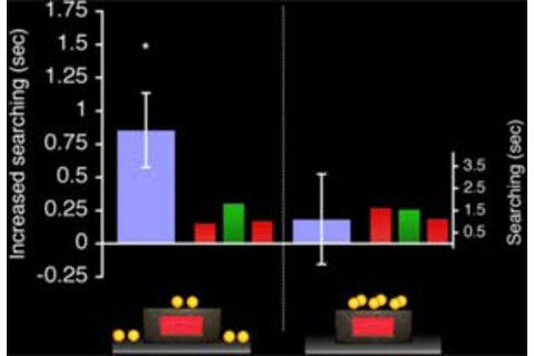 Feigenson 之前曾使用过这种方法,发现当涉及一、二或三个物体时,婴儿会搜索正确的时间,但在涉及四个物体时却失败了。在这些实验中,重要的是物体的数量,而不是它们的吸引力(婴儿记不住四个有趣的玩具,就像记不住四个无聊的白色球一样)。