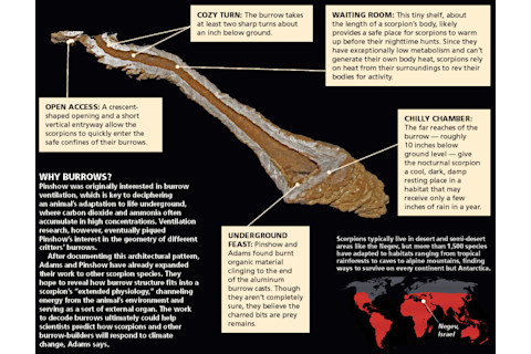通过将熔融铝倒入洞穴中并创建所得铸件的三维图像,这对研究人员惊讶地发现了一种具有尖锐曲线的稳定形状。这种模式表明这种蝎子物种已经进化出一种简单但高度实用的蓝图,用于建造维持生命的洞穴。