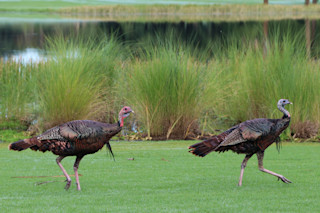 当火鸡停止小跑时,例如它们受惊时,它们还可以选择展开翅膀飞行——速度高达每小时 60 英里!