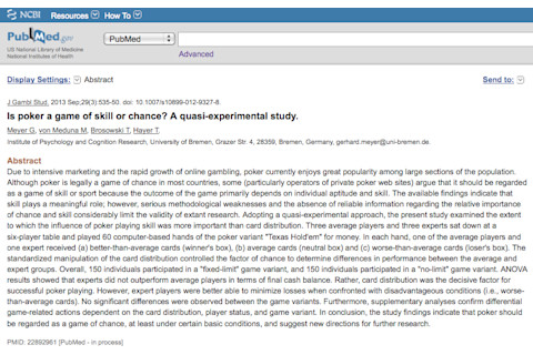 照片:flickr/Ulf Liljankoski你真的能提高扑克水平吗?赢得比赛需要多少技巧?在这项“准实验”研究中,研究人员着手回答这些问题。为此,他们让专家和新手扑克玩家进行固定牌局,并获得预先安排的牌。这使得作者能够测试是技巧还是运气更能预测比赛结果。结果显示,尽管发牌基本上决定了获胜者,但在玩家拿到烂牌时,技巧对于减少损失很重要。所以,如果你是初学者,最好有好运气,否则你可能会在比赛结束时破产。扑克是技巧游戏还是运气游戏?一项准实验研究。 “由于密集的市场营销和在线赌博的快速增长,扑克目前在大部分人群中享有盛誉。尽管在大多数国家,扑克在法律上被视为一种运气游戏,但一些人(尤其是私人扑克网站的运营商)认为,它应该被视为一种技巧游戏或体育运动,因为比赛结果主要取决于个人能力和技巧。现有研究表明,技巧起着重要作用;然而,严重的 منهج学缺陷以及关于运气和技巧相对重要性缺乏可靠信息,极大地限制了现有研究的有效性。本研究采用准实验方法,检验了扑克技巧的影响程度是否比发牌更重要。三名普通玩家和三名专家坐在一张六人牌桌前,为钱玩了 60 局计算机模拟的“德州扑克”变体游戏。在每一局中,一名普通玩家和一名专家获得(a)好于平均水平的牌(赢家牌盒)、(b)平均水平的牌(中性牌盒)和(c)差于平均水平的牌(输家牌盒)。发牌的标准操纵控制了运气因素,以确定普通玩家组和专家组之间的表现差异。总共有 150 人参与了“固定限注”游戏变体,150 人参与了“无限注”游戏变体。方差分析结果表明,在最终现金余额方面,专家玩家的表现并不优于普通玩家。相反,发牌是成功扑克玩家的关键因素。然而,专家玩家在面对不利条件(即差于平均水平的牌)时,更能有效地减少损失。游戏变体之间没有观察到显著差异。此外,补充分析证实了取决于发牌、玩家身份和游戏变体的不同游戏相关行为。总之,研究结果表明,至少在某些基本条件下,扑克应被视为一种运气游戏,并为进一步研究指明了新的方向。”