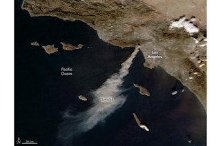 今天风还没有减弱。 它们正在将大量烟雾吹向西南方向,远在太平洋上空,正如美国宇航局的Aqua卫星拍摄的这张图像所示。