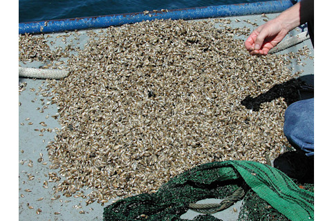 来自密歇根湖鱼类拖网样本的潜泥蛤。(图片来源:NOAA/Greg Marks)