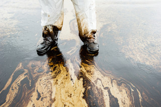 传统的用于分散漏油的化学品对海洋生物的危害可能比石油本身更大。相反,环保主义者未来可能会使用特殊的涂层网,将油与水分离。这种涂层于三月份公布, 覆盖不锈钢网,首先添加二氧化硅纳米颗粒以形成粗糙的、拒液表面。接下来是作为粘合剂的聚合物层,然后是一层表面活性剂,这是一种分子,有两个关键部分:一个亲水部分和一个疏油部分。表面活性剂对这两种液体的不同反应使得涂层网能够将它们分离。当 Brown 和 Bhushan 测试该网时,水会滑过,而油会留在顶部。