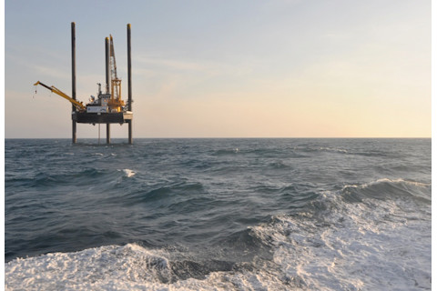 科学家们使用 Liftboat Myrtle 号在 2016 年从撞击坑收集了岩芯。(图片来源:Eric Betz/Discover 杂志)