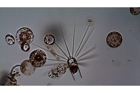 南极的许多动物依赖依赖冰的南极磷虾作为食物来源,而冰决定了这些磷虾的分布。讲座中常常没有深入讨论的是磷虾吃什么:浮游植物,漂浮在海中的微小植物状生物。浮游植物像微型太阳能电池板一样利用阳光来获取能量。这种太阳能被转化为有机碳,为磷虾及其捕食者提供能量。