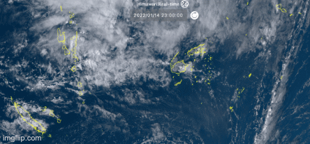 Himawari-8卫星于2022年1月14日至15日拍摄的动画GIF图像,捕捉到了洪阿汤加-洪阿哈阿帕伊火山的喷发。来源:JMA,由Erik Klemetti制作
