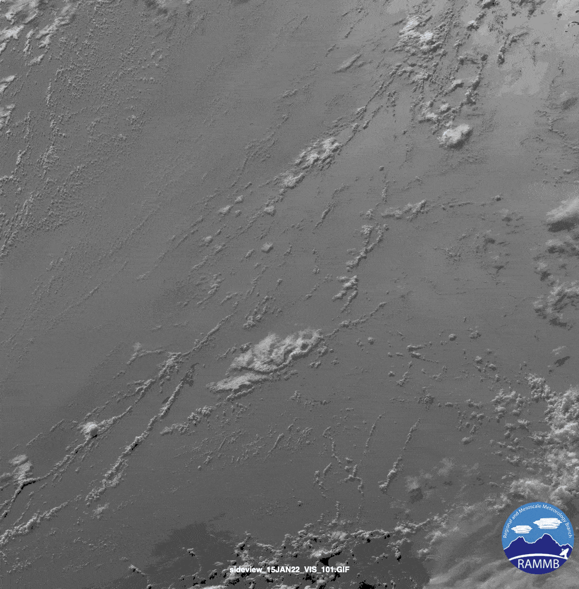 GOES-17卫星2022年1月14日至15日洪阿汤加-洪阿哈阿帕伊火山喷发的循环视频。来源:NOAA/RAMMB。