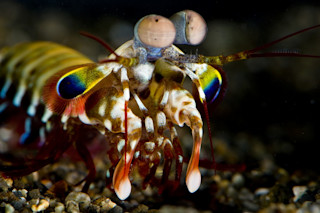 它们的晚餐也是如此。这种独特的视觉能力可能是螳螂虾捕获猎物的秘密武器——当然,这还要加上它们能够以0.22口径子弹的速度挥动前爪,来击碎、刺穿或肢解毫无戒备的受害者。