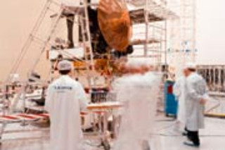 空中客车公司还有另一个成功的动力:它已经在开发“金星快车”,该任务将主要由“火星快车”的备用部件组装而成,并计划于2005年发射。南伍德采纳了克里德兰德为“火星快车”提出的想法,并将其发挥到极致。他的整个项目现在都按生产组进行组织,其中每个昂贵的旗舰任务,例如耗资7.5亿美元的“罗塞塔”号,都至少有一个更便宜的衍生品。火星任务是这项基本策略的首次测试。“它快速、便宜;这就是它被称为‘火星快车’的原因,”科拉迪尼说。“而且它很美——如果一切顺利的话。”他交叉手指,笑着说。
