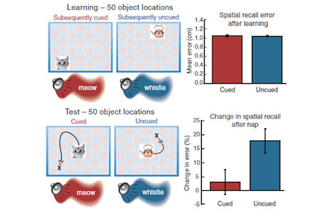 他让十二名志愿者记住屏幕上出现的 50 个不同物品的位置。这些物品,从猫咪到水壶,都伴随着相关的声音,比如喵喵叫或口哨声。不久之后,这些受试者都小睡了一会儿。当他们睡觉时,Rudoy 在白噪音的背景下播放了其中 25 个物品的声音。当志愿者醒来时,他们必须将这 50 个物品中的每一个都放在正确的位置,他们会根据他们离实际目标有多近而被评分。