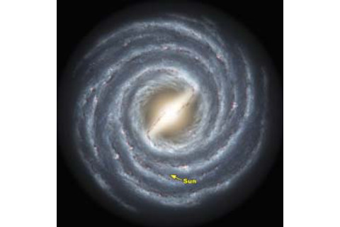 银河系是由气体、尘埃和大约2000亿颗恒星组成的集合。它有三个主要部分:中心凸起(有时称为“中心”)、盘和球状恒星晕。我们的银河系是一个螺旋星系,因为盘状结构呈现出巨大的螺旋臂。令人惊讶的是,我们对盘状结构了解很多。由于我们身处其中,因此很难绘制它;想象一下身处森林深处,试图弄清楚森林边界的形状。尽管如此,天文学家使用各种不同的方法,已经相当成功地了解了它。然而,内部部分有所不同。我们与它之间有25,000光年的尘埃、气体、恒星和各种杂物,因此即使看到那些恒星也变得非常困难。这时,斯皮策太空望远镜就派上用场了。这是一个设计用来观测红外线的观测站,肉眼不可见。如果这有帮助,你可以把这种光想象成比红色更红。虽然浓厚的尘埃和气体云阻挡了我们在可见光下观测银河系核心的视线,但红外线可以穿透。因此,斯皮策望远镜可以看到中心附近的恒星。我们早就知道我们的银河系中心有一个棒状结构,这是一个由恒星组成的矩形集合。现在有所不同的是,斯皮策望远镜的这些新数据清晰地显示了棒状结构,并显示其长度约为27,000光年,这非常大。它也定义得很好。他们制作了一张艺术插图: