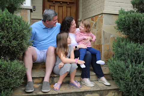 Emma(右)在家中与父亲 Brian、母亲 Julia 和姐姐 Claire 悠闲地在一起。(图片来源:Jan Osborn/Dallas Doing Good)