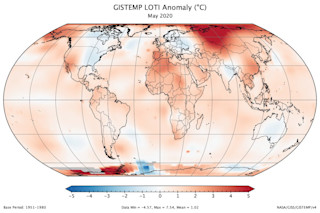 NASA数据显示,总体而言,今年冬季和春季(2019年12月至2020年5月)是141年来地表温度第二高的时期。
