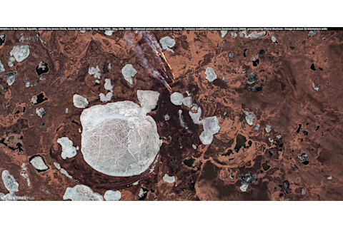 上图的卫星图像显示了五月下旬在西伯利亚北极地区燃烧的野火。仔细看一些湖泊。是的,还有冰!与火焰的对比尤为 striking。