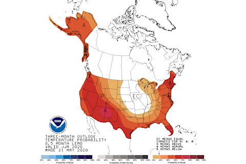 正如上面的预测地图所示,美国大部分地区夏季可能异常温暖。这对美国西部来说尤其令人担忧,美国西部大部分地区已经遭受了 中度至重度干旱,这部分原因在于高温导致山区积雪迅速融化和土壤干燥。