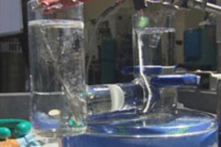 Nocera 说,目前生产燃料电池所需的氢气和氧气的方法是在高腐蚀性环境中运行的,这意味着整个反应必须在昂贵的高度工程化的容器中进行。 但本周在麻省理工学院,反应在一个开放的玻璃容器中进行,容器大约有两个小酒杯那么大,研究人员用他们的双手进行操作,没有沉重的安全手套或护目镜 [路透社]。