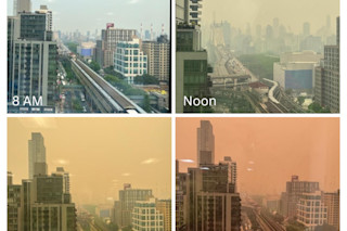 2023 年 6 月 7 日不同时间戳的照片显示了纽约市的空气质量变化速度之快。鸣谢:Nina