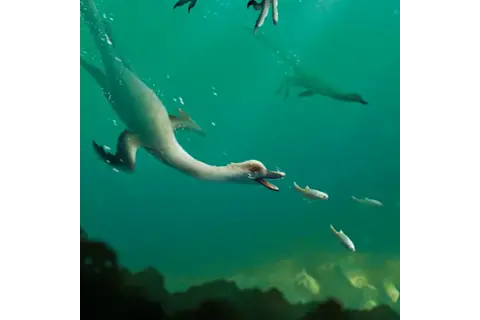 它拥有长长的脖子,这将使这种半水生物种能够很好地在它可能栖息的湖泊中捕食,时间大约在7700万年前。它看起来会像一种潜水鸟,有带牙齿的喙和适合划水的鳍状前肢。但有趣的是,它的嘴巴是扁平的,像鸭嘴而不是尖嘴。