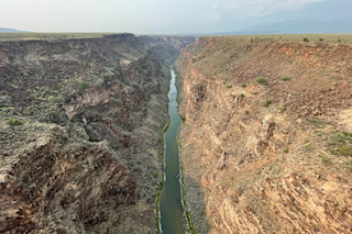 2021 年 7 月 12 日,在新墨西哥州北部,从里奥格兰德峡谷上方看向北方的景色中,可以看到远方野火产生的烟雾。一项新研究发现,2000 年至 2021 年是北美西南部至少 1200 年来最干旱的 22 年。如果没有人为气候变化,这甚至不能算作一次持续的干旱事件。图片来源:©Tom Yulsman