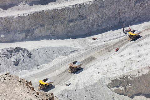 楚基卡马塔矿(地球上最大的铜矿之一)的采矿作业。用画面底部的货车作为比例尺。(图片来源:维基共享资源)