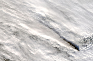 2014年11月14日Aqua MODIS拍摄的Pavlof火山较薄、较稀疏的火山灰柱。