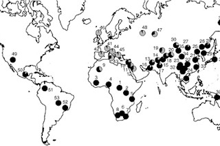 SLC24A5 上图来自 Norton 等人的 《欧洲人和东亚人浅肤色趋同演化的遗传证据》。该图显示,在 SLC45A2 基因座上的 rs16891982 位点,在欧洲和世界其他地区之间存在显著差异。这与 SLC24A5 不同,后者中区分非洲人/东亚人与欧洲人的已知等位基因在西亚欧亚大陆(我的父母都是“欧洲”变异的纯合子;事实上,SLC24A5 的衍生变异在东亚和南亚的比例约为 50%)的频率非常高。在欧洲人中,SLC24A5 的祖先等位基因非常难以找到,因为其衍生变异几乎达到了固定。相比之下,SLC45A2 的次要等位基因在西班牙南部等地仍以可观的频率存在,即使在北欧,其衍生等位基因也未达到固定。在此我不会回顾关于人类色素沉着基因组学和演化的文献。我只想指出,似乎大部分种群间的变异是由少数几个基因控制的。这是一个多基因性状,但仅此而已。其次,已经出现了相当多的证据表明,一些浅肤色衍生变异的频率仅在非常近期(例如,约 1 万年前)才有所增加。因此,色素沉着是一个特殊的性状,因为其遗传基础可以提供历史系统发育信息,这归因于分化和选择性清除的不同时间点。下面我将汇集几项关于 SLC45A2 频率的研究结果。我邀请读者们深入研究。我想说两点。第一,在约 140 名北埃塞俄比亚人中,“欧洲”变异的频率为 0%。这对于一个与西亚欧亚大陆有约 50% 西欧亚血统的种群来说,这很不寻常。第二,南亚人中 SLC45A2 衍生变异的比例恰好与 Zack Ajmal 的结果中“东北欧”的百分比相符。