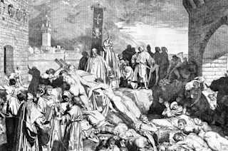从14世纪中叶的黑死病开始,并经历了连续几波的疫情,这种致命的瘟疫在300年间重创了欧洲人口,总共杀死了数亿人——占总人口的三分之一到二分之一。没有人知道病因。人们对细菌一无所知,因此恐慌的民众转而相信关于鼠疫病因的似是而非理论:难闻的气味、阴暗的空气、体内体液失衡,甚至上帝的愤怒。