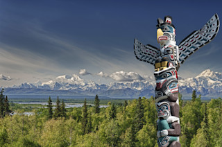 “我的祖母是狼,我的祖父是鹰,”他说,并补充说他家人的纹章设计包含了这两种动物。“一些赫利苏克人和该地区的其他第一民族群体将他们的仪式纹章印在毯子上,或者可能会纹身展示它们,而其他人则将他们的纹章刻在图腾柱上,动物根据家族历史策略性地排列。”