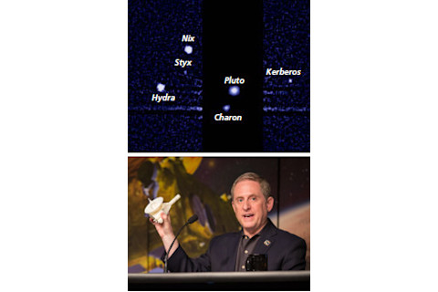 顶部:2012年哈勃望远镜拍摄的照片显示了冥王星、其最大的卫星卡戎以及另外四颗已知的卫星。顶部:艾伦·斯特恩,“新视野号”项目首席研究员,也是冥王星最忠实的粉丝之一。| 从上至下:NASA/ESA/M. Showalter (SETI Institute); NASA/Joel Kowsky
