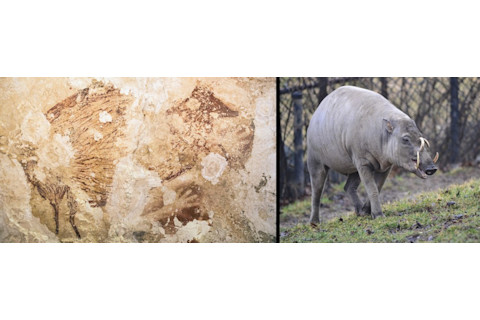 左图:鹿豚('deer-pig')和手部拓印。(Kinez Riza)右图:现代鹿豚。(mshehan via Flickr)本周在Nature杂志报道的这些发现非常引人注目。其中一个手部拓印至少有39,900年的历史,使其成为世界上已知最古老的手部拓印。而一幅“猪鹿”(Babyrousa)的绘画至少创作于35,400年前,是全世界最早的具象描绘之一。科学家们渴望确定岩石艺术传统是在印度尼西亚和欧洲地区独立发展起来的,还是第一批人类从非洲带来了这一传统。回答这个问题可能有助于我们理解人类血统中艺术创作的最早起源,并揭示我们最古老的祖先如何体验这个世界。