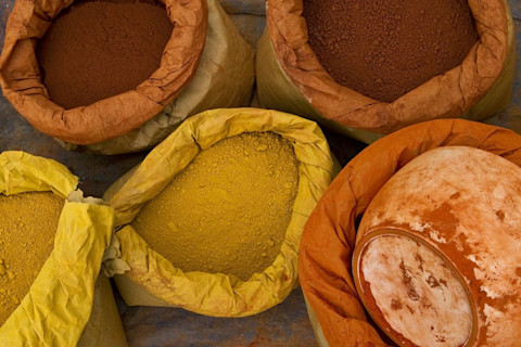 霍奇斯基说,在南非,赭石被广泛用作防晒霜。“你可以在五金店和传统药店买到它,”霍奇斯基说,这种防晒霜被称为“ibomvu”,是祖鲁语中“红色”的意思。