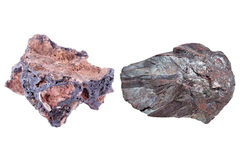 针铁矿(左)和赤铁矿 Coldmoon Photoproject/Shutterstock;vvoe/Shutterstock