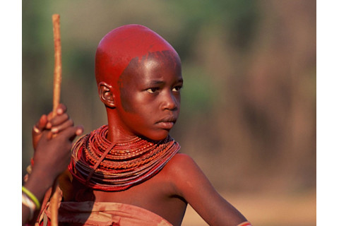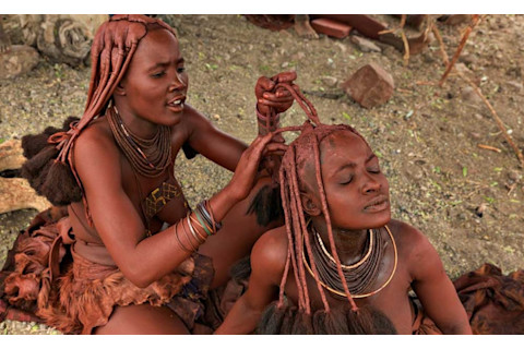 纳米比亚西北部的辛巴族妇女仍然在头发上涂抹赭石。Stephen Alvarez/国家地理创意