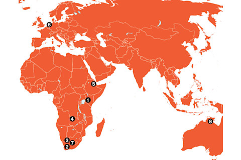 8. 澳大利亚马杰贝贝 (Madjedbebe):2017年,在数千件石器中发现的各种赭石碎片帮助研究人员确定,人类在6.5万年前就已生活在澳大利亚——比研究人员原先认为的早了2万年。