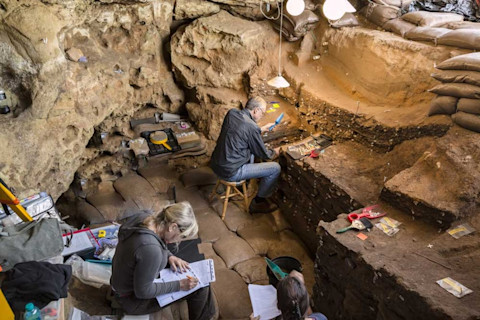 南非布隆伯斯洞穴的发掘发现了10万年前的文物。图片由克里斯托弗·亨希尔伍德教授提供。