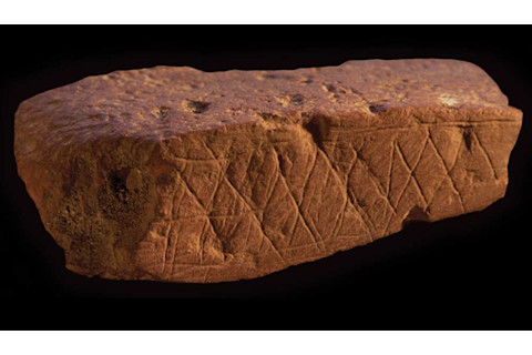 这块来自布隆伯斯洞穴的刻有图案的赭石已有约10万年历史,是已知最古老的同类艺术品。Christopher Henshilwood
