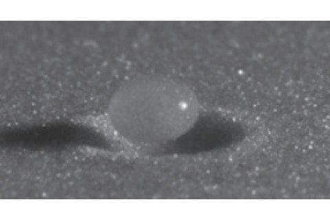 沙水混合的液体球弹跳。如果雨滴撞击的能量稍大一些,液体会瞬间扩散成沙质的“手指”。