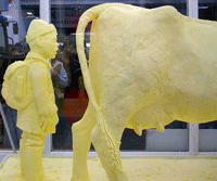 本杰明·富兰克林的一句格言:如果你的头是蜡做的,就不要在阳光下行走。在宾夕法尼亚州农展会的一个雕塑中,富兰克林的头是黄油做的。现在它变成了生物燃料。黄油富兰克林是几个脂肪雕塑之一,每年都会出现在展会上。2007年农展会之后,美国农业部生物化学家Michael J. Haas建议展会组织者将酸败的雕塑转化为生物燃料,据《纽约时报》报道。 BlackGold Biofuels承担了这项任务,其中包括用甲醇分子替换黄油中的甘油,形成生物柴油。富兰克林证明了800磅黄油可以节省75加仑的生物柴油燃料和低等级的燃料油。该公司的真正使命是将农业废弃物(而不是可食用的黄油)转化为燃料,因为黄油的生产成本相当高。正如BlackGold高管Emily Landsburg 告诉《纽约时报》的那样,拆除开国元勋“并不是一个典型的日常工作。” Landsburg说,黄油到生物燃料的途径可能不会流行,因为“美国酸败黄油雕塑的数量可能并不重要。” 相关内容:Discoblog:乘坐牛肉火车——美国铁路公司推出一辆以牛肉生物燃料为动力的火车 Discoblog:90210医生用抽脂脂肪为SUV提供动力 Discoblog:终于!一个自给自足的、处理污水的、粪便驱动的火箭 Discoblog:这辆粪便汽车可以从70个家庭的甲烷中获取所有能量
